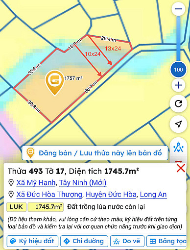 Đất lúa 23x24 đường bê tông ra 823D chỉ 300m
